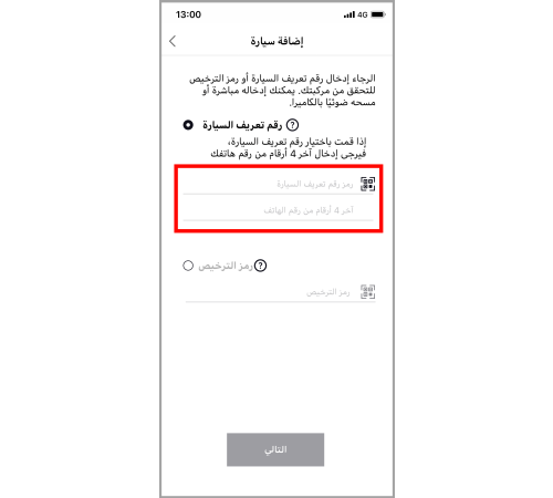 أدخل آخر 4 أرقام من رقم هاتفك الذي قمت بتسجيله لدى الوكيل عند شرائك السيارة.
