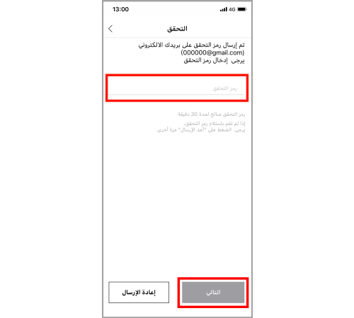 أدخل رمز التحقق ثم اضغط على "التالي".