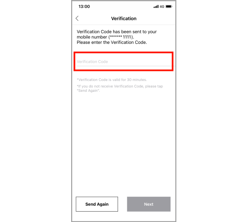 An SMS verification code will be sent to your smartphone.