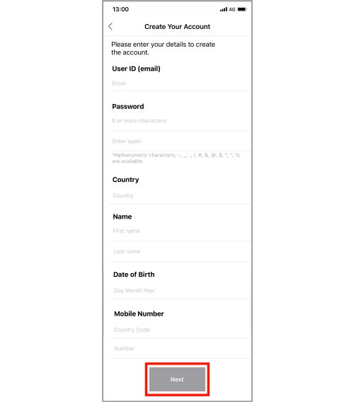 Start the app and tap "Register".