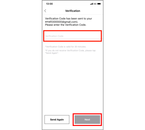 Tap "Next", and verification code will be sent to your email address.