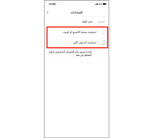 كــيف يمكنني تفعيل مصادقة خاصية بصمة الأصبع أو التعرف على الوجه في التطبيق؟