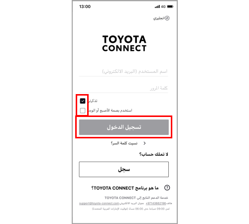 إذا قمت باختيار "تذكرني" ثم استخدامت خاصية التعرف على الوجه أو بصمة الأصبع قبل تسجيل الدخول، فيمكنك استخدام خاصية التعرف على الوجه أو بصمة الأصبع في المرة القادمة عند فتح التطبيق.