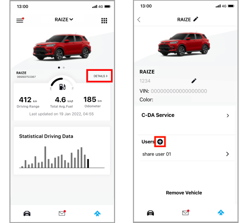 i. Request that the user whom you want to share the vehicle with open the TOYOTA CONNECT app on their device.