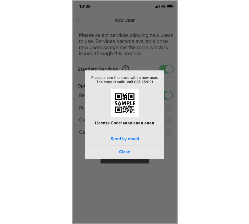 Please share the generated License Code by email or QR code.